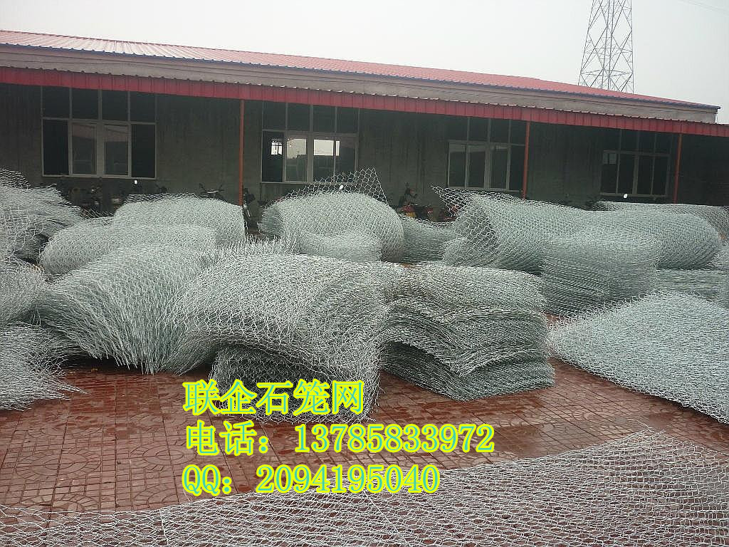 鍍鋅石籠網是金屬線材編織的角形網(六角網)制成的網箱,使用的金屬線徑是根據六角形的大小而不同。如果是金屬鍍層的金屬線六角形,則使用線徑為2.0mm到4.0mm的金屬線,如果是PVC包覆的金屬線編織的六角網,則使用外徑為3.0mm到4.0mm的PVC(金屬)線.外框邊緣的線則使用比六角網線粗一號的線。