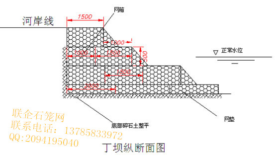 格賓網箱是由格賓網面構成的長方體箱形構件,是由有必定距離巨細的隔板組成若干單元格,一同用鋼絲對每個隔板的周邊和面板的邊端都進行加固。在護岸施工現場再向格賓網箱里邊填充石料,依據不一樣護岸區域、不一樣工程等級和不一樣種類而所選用的填料也是不盡相同,常見的有碎石、片石、卵石、砂礫土石等。所填料的巨細通常是格賓網孔巨細的1.5倍或2倍選擇,也能夠用其他資料如磚塊、拋棄的混凝土等。格賓網箱具有極佳的安穩性和全體性,它是由熱軋鋼絲拉伸后構成的網線,經熱鍍鋅或復合防銹處置,再經聚氯乙稀覆塑處置后織成,因而具有十分高的強度和耐腐蝕性,在天然環境中通常可正常運用10年而不改變性狀。一同,格賓網箱護岸布局能與當地的天然環境極好地交融,填料之間的空地為水氣、營養供給了杰出的通道,為水生生物供給了成長空間。這種布局抗沖刷才能十分強,并且具有很高的抗洪強度,適用于水量較大且流速較快的河道,并且造價低價。
