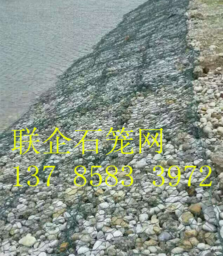 包塑石籠網鋅-5%鋁-混合稀土合金鋼絲包塑:在鋅-5%鋁-混合稀土合金鋼絲的表面包一層PVC保護層,再編織成各種規格的六角網。這層PVC保護層將會大大增加在高污染環境中的保護,并且通過不同顏色的選擇,使其能和周圍環境融合。