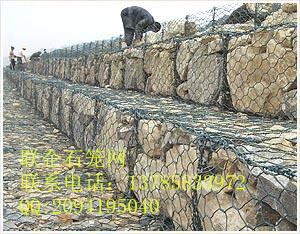 包塑石籠網由高抗腐蝕、高強度、具有延展性的低碳鋼絲包覆PVC運用機械編織而成,雙絞合擰花編織網,該網制造而成的箱型布局就是包塑石籠網。依據ASTM和EN規范,所運用的低碳鋼絲直徑依據工程設計需求而不一樣。通常介于2.0-4.0mm之間,石籠網鋼絲的抗拉強度不少于38kg/m2,金屬鍍層分量通常高于245g/m2,石籠網片的邊際線直徑通常要大于網線直徑。其雙線絞合有些的長度不得小于50mm,以確保絞合有些鋼絲的金屬鍍層和PVC鍍層不受損壞。
