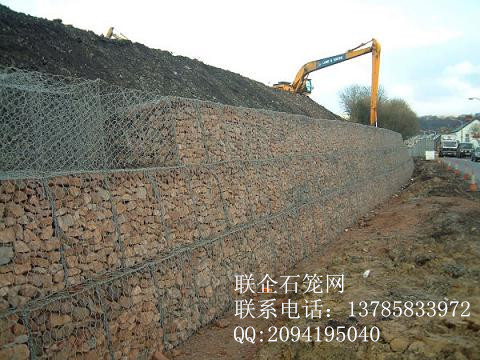 石籠網(wǎng)擋土墻,是石籠網(wǎng)籠子層疊堆砌的擋土建筑物。石籠網(wǎng)箱擋土墻的構(gòu)件是在網(wǎng)箱內(nèi)部填充大小比例相當(dāng)?shù)氖瘔K,這樣就有一定的孔隙率,由于石塊之間的間隙,可以排出砌體后面的土壤和護(hù)坡下面土層的水,這樣就降低了水位,減少墻體后和坡下的地表水壓力,水及時排出降低了擋土墻被破壞的幾率,這樣擋土墻的壽命會大大的延長。同時墻體網(wǎng)箱是鐵絲網(wǎng)制作的籠子,能夠有一定的變形,況且,石塊與石塊之間,也可以滑動,所以擋土墻的變形能力也能夠緩沖突發(fā)的外力。