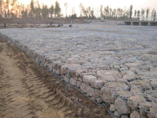 石籠護墊鋼絲選用熱鍍鋅或高爾凡工藝,鋼絲表面鍍層愈加安穩,可有用削減石籠護墊網線的氧化作用。再經過包覆PVC工藝后,具有耐腐蝕、防靜電、抗老化、抗氧化的特性,據試驗,將塑料在?30%濃度鹽酸中浸泡10天,PVC塑料無變色,無破裂現象。由此可見,即便在高污染地區應用此材料也是可靠的。使用壽命可達100年。??